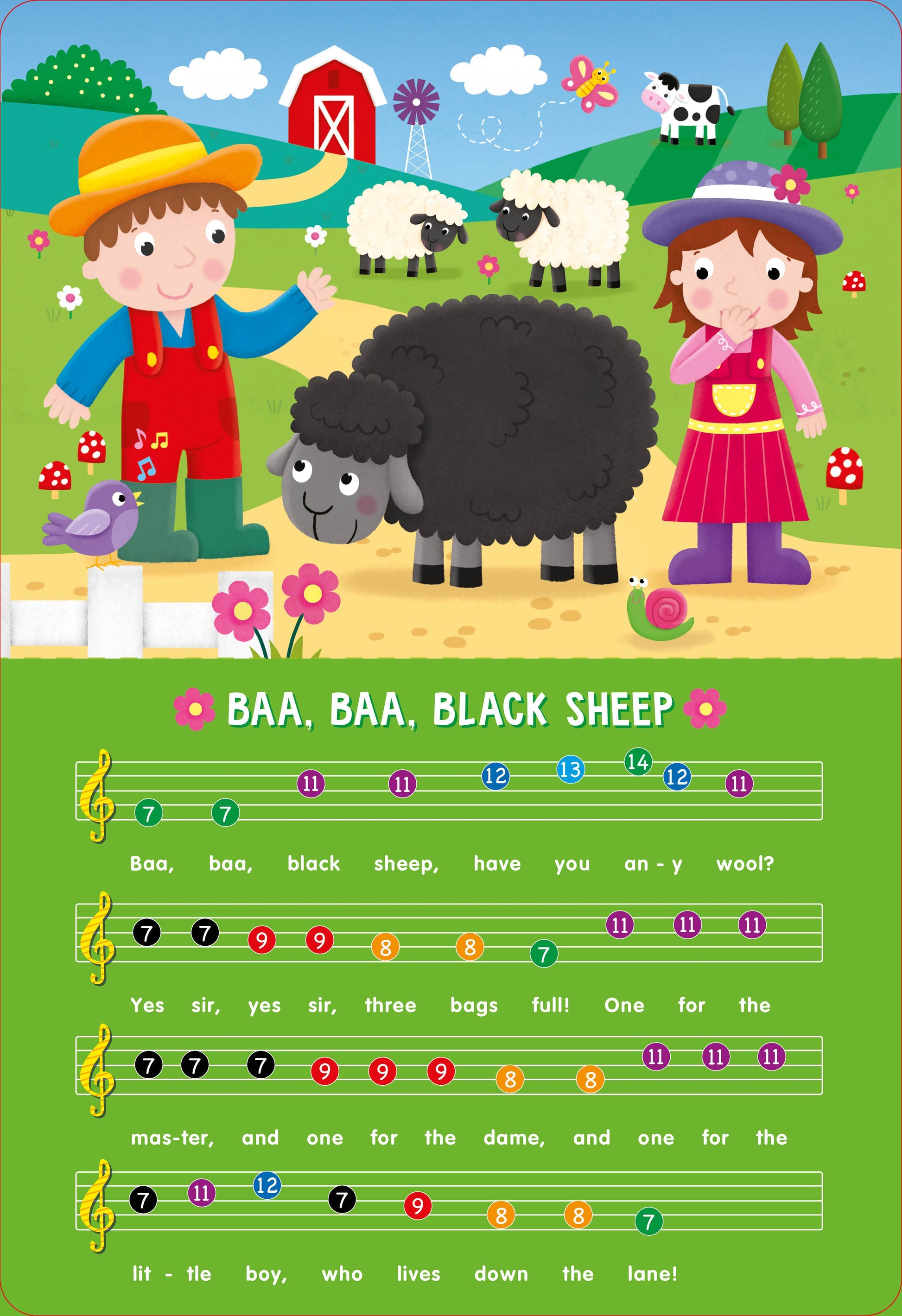 Play along to fun songs on your very own electronic keyboard! Includes an easy-to-play collection of classic children’s song. Just push the key that matches the color and number of the note above each word! - Learn to play 10 fun and easy songs! - Match each musical note to the matching piano key to play each song. - Lyrics are included so you can sing along too! - Learn to play 10 fun and easy songs! - Match each musical note to the matching piano key to play each song. - Lyrics are included so you can sing along too!